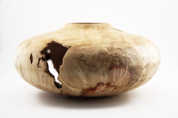 Robert Smith resides with his family in Cody, Wy.  Robert is a self-taught turner, and has been turning wood for 15 years. A work accident left him disabled but as that door closed, turning became the opening door. He particularly likes working on two particular types of wood. The first type of wood he looks for is rather unstable, like manzanita or different root balls. In these raw pieces he sees a shape or form inside the voids and around inclusions. In his opinion, these pieces harbor the most beautiful and delicate shapes. The finished piece is inside, he just has to get it out! The other type of wood is solid and stable where he can make any shape or form he wishes. The pieces he creates from that wood, are the ones that he pushes the boundaries on in unlimited shapes and go as thin as possible.
