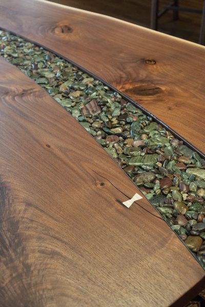 Walnut and river rock dining table.