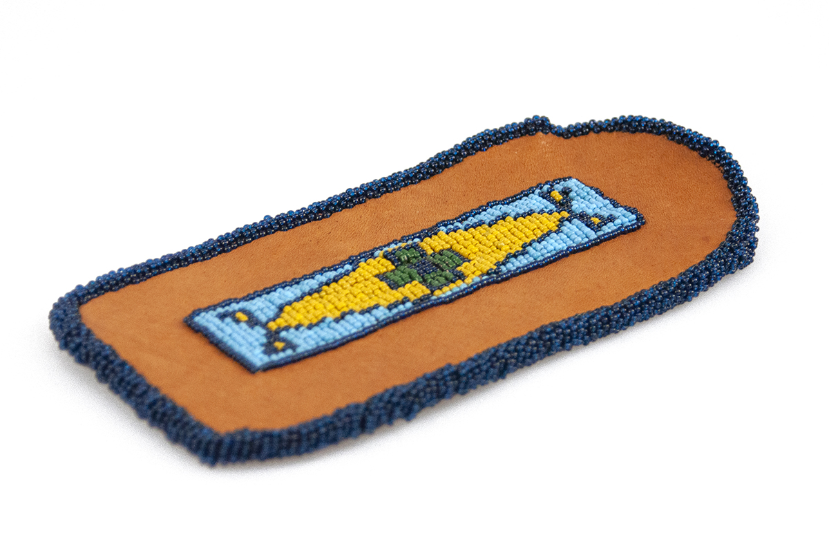 Hand-beaded, leather eyeglass case.