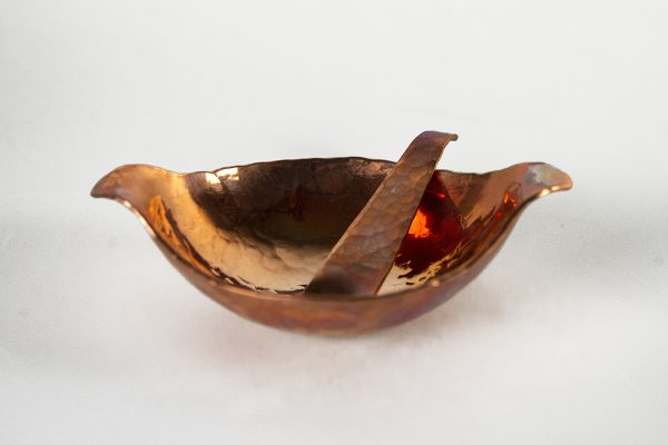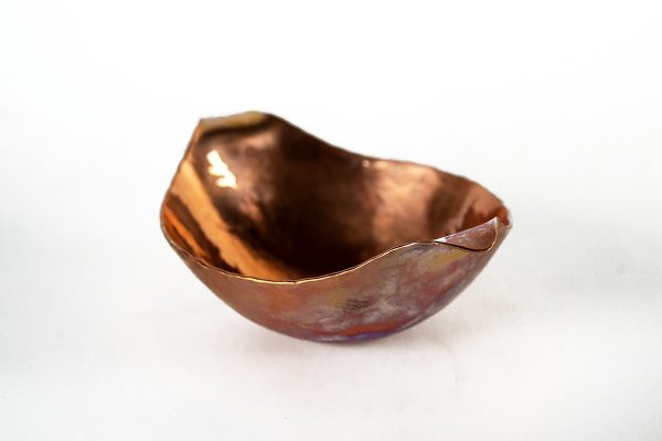 I love forming metal. Copper feels like a suspended liquid as I’m working it, as if it’s flowing and wants to work with me to take on whatever shape I envision. The natural world and its incomparable beauty are one of my main sources of inspiration. After hiking the Appalachian Trail, my love of nature became a central focus in my art. Sometimes I begin with the classical proportions and forms of the historic American silver that surrounded me growing up, other pieces begin with an idea rather than a fully formed picture and I feel it out as I work the metal. This allows opportunities to arise that I didn’t anticipate; serendipity takes over, leading me on an exciting, unplanned journey.