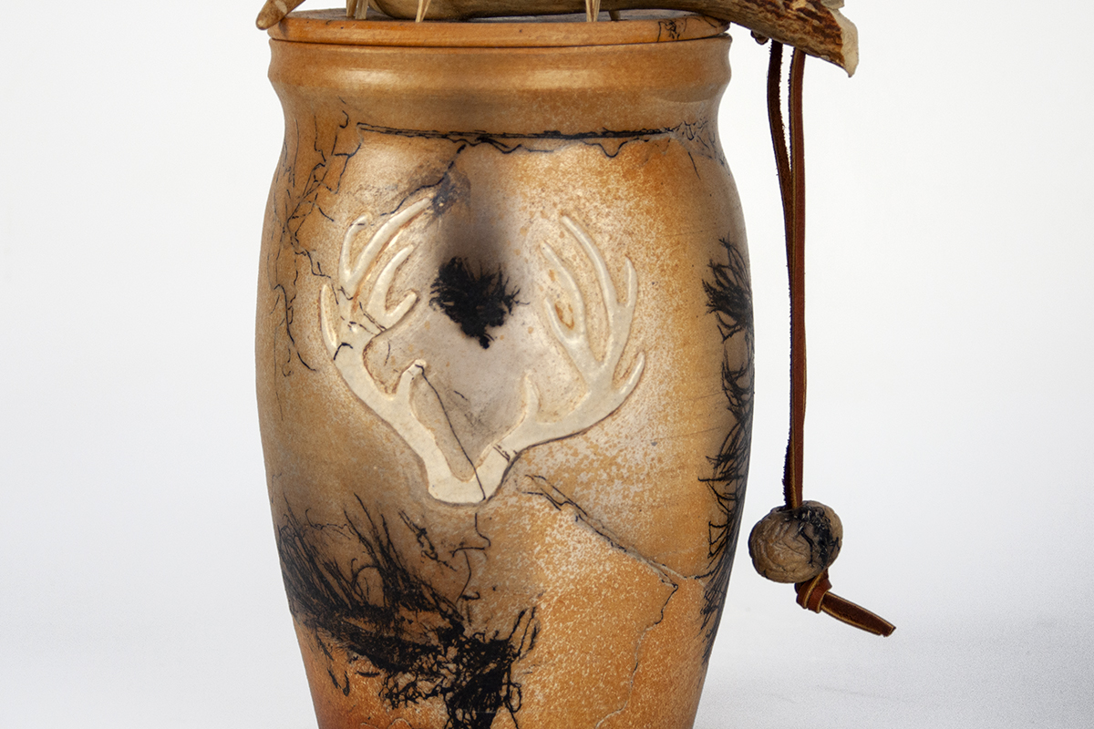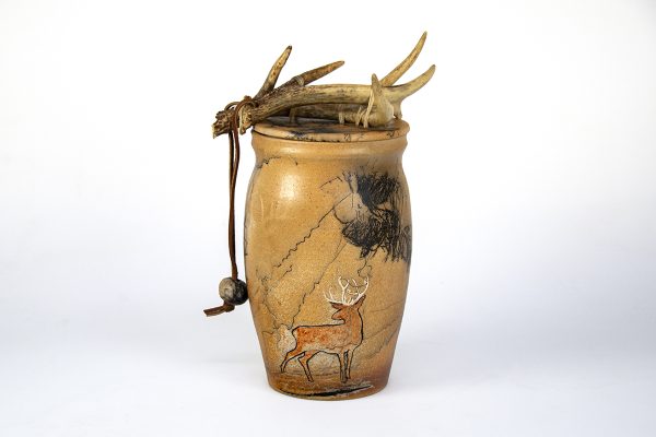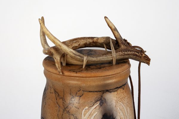 Ask the ArtisanThe Elk Jar with Antler Rattle is a stunning, handcrafted vessel that captures the rugged elegance of the wild. This piece is not just a jar—it is a powerful artistic statement, perfect for a lodge, rustic home, or any collector of unique wildlife art.