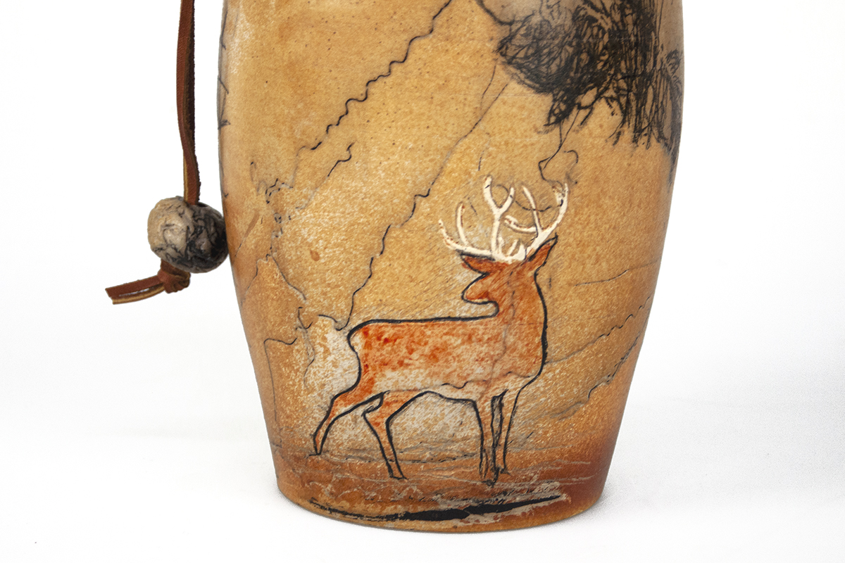 My focus is to celebrate the horse and western lifestyle through clay and handcrafted pottery. I use clay, literally earth and fire, as the canvas to represent the forces of nature that connect nature and horses with humans. Most often, a horse’s hair is burned into my pieces creating bold, unique black lines. With that I feel the spirit of the animal becomes part of the vessel.
