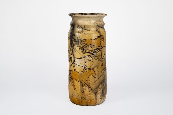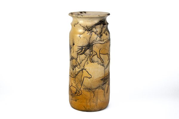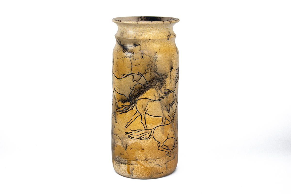 My focus is to celebrate the horse and western lifestyle through clay and handcrafted pottery. I use clay, literally earth and fire, as the canvas to represent the forces of nature that connect nature and horses with humans. Most often, a horse’s hair is burned into my pieces creating bold, unique black lines. With that I feel the spirit of the animal becomes part of the vessel.