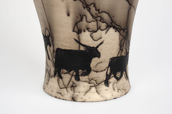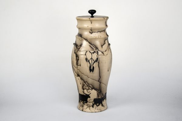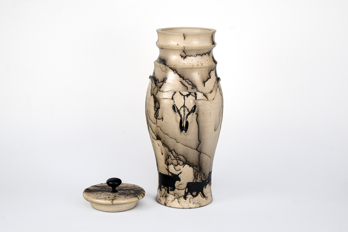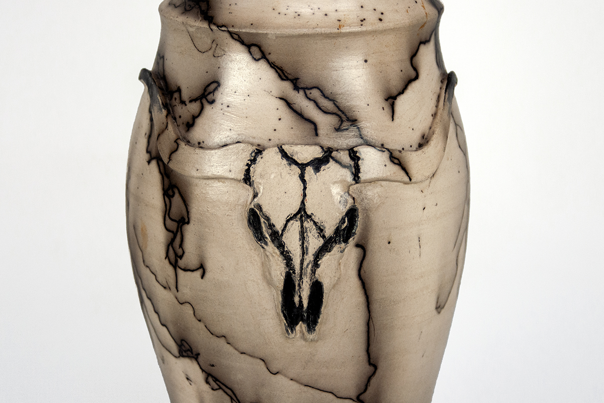 My focus is to celebrate the horse and western lifestyle through clay and handcrafted pottery. I use clay, literally earth and fire, as the canvas to represent the forces of nature that connect nature and horses with humans. Most often, a horse’s hair is burned into my pieces creating bold, unique black lines. With that I feel the spirit of the animal becomes part of the vessel.