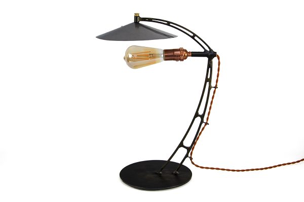At the heart of the lamp, a polished copper socket holds an exposed Edison-style filament bulb in a bold, horizontal suspension. This juxtaposition of metals, the cool, matte charcoal of the steel against the fiery warmth of the copper, creates a visual tension that is both sophisticated and grounded. When lit, the amber glow of the filament catches the metallic accents, softening the lamp’s brutalist edges with a nostalgic, late-night radiance. Every detail, down to the tactile weight of the metal and the rich texture of the braided fabric cord, has been considered to ensure this piece feels as substantial as it looks.