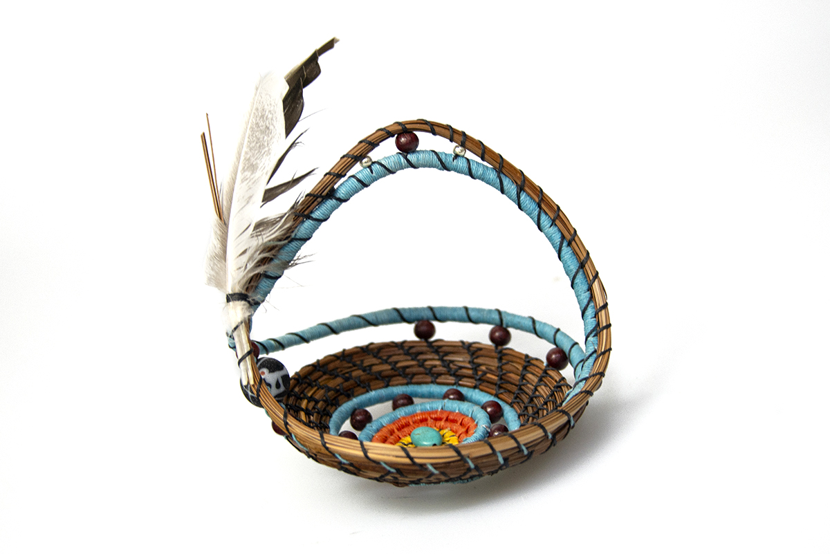 Handwoven pine needle basket.