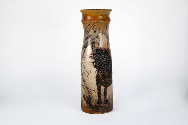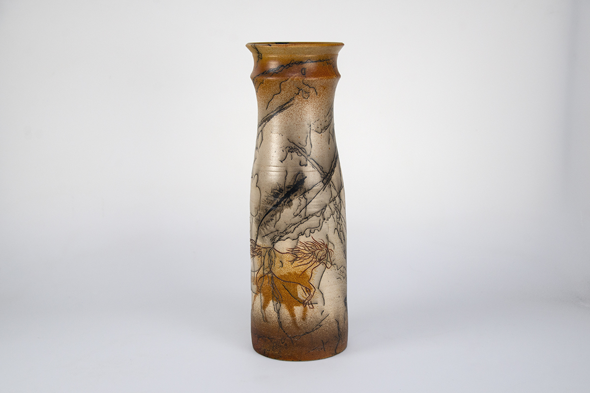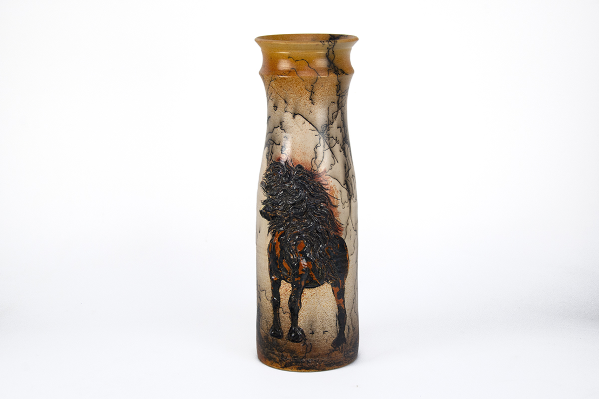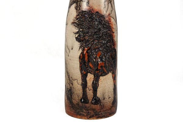 My focus is to celebrate the horse and western lifestyle through clay and handcrafted pottery. I use clay, literally earth and fire, as the canvas to represent the forces of nature that connect nature and horses with humans. Most often, a horse’s hair is burned into my pieces creating bold, unique black lines. With that I feel the spirit of the animal becomes part of the vessel.